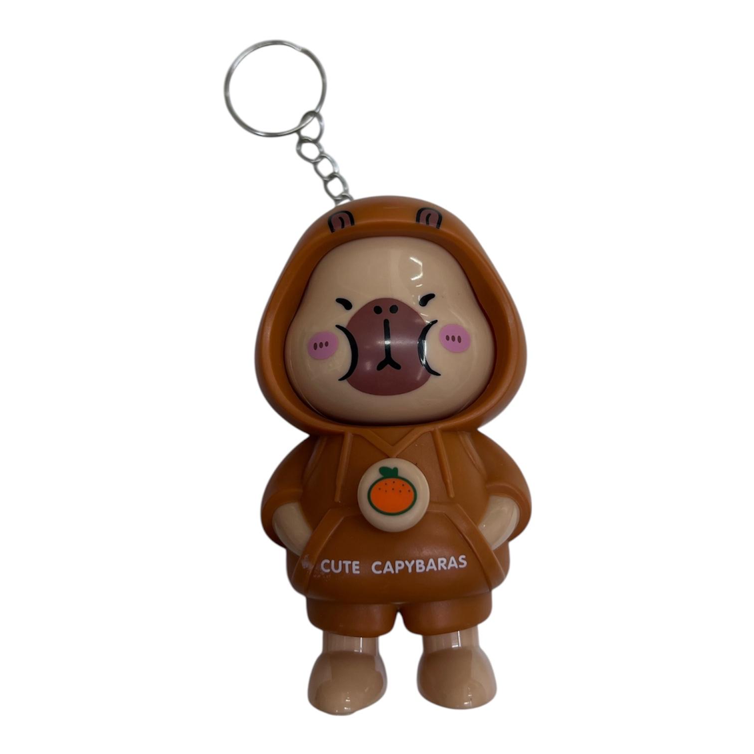 Toptan Capybara model anahtarlık ortasındaki tuşa basarak yüzü dönebilme özelliğine sahip.