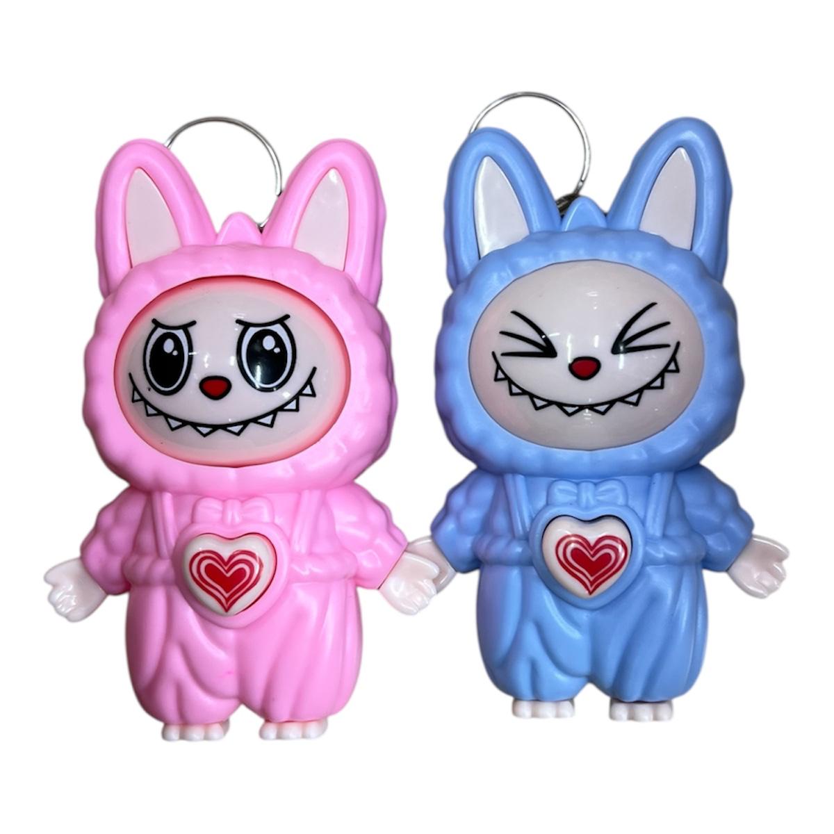 Toptan Labubu model anahtarlık ortasındaki tuşa basarak yüzü dönebilme özelliğine sahip.
