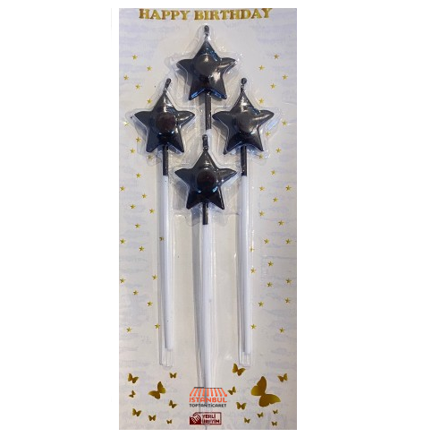 Yıldız Model Çubuk Mum Siyah Renk 4 Lü